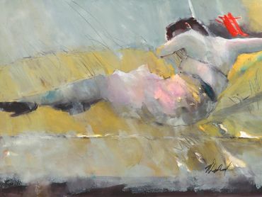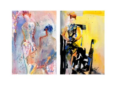 72"x28" Art Installation. Ten 12x12 sculptural media on canvas.